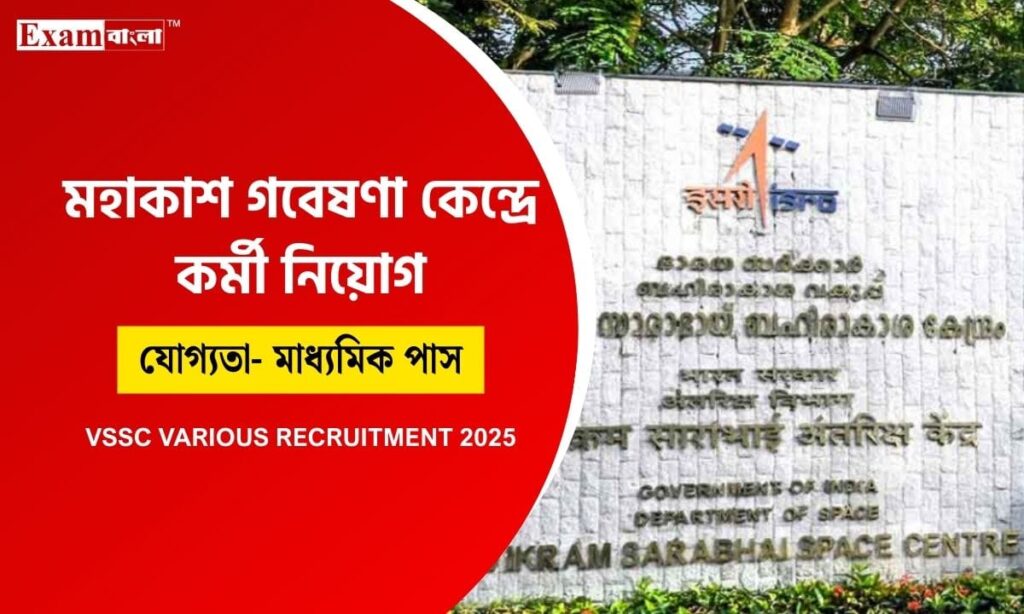 VSSC Recruitment: ভারতের অন্যতম প্রধান মহাকাশ গবেষণা সংস্থা বিক্রম সারাভাই স্পেস সেন্টার (VSSC) এবার দুটি ভিন্ন পদে নিয়োগের বিজ্ঞপ্তি প্রকাশ করেছে। চাকরিপ্রার্থীদের জন্য এটি একটি দুর্দান্ত সুযোগ। আপনিও যদি ভারতের অন্যতম প্রধান মহাকাশ গবেষণা সংস্থার সাথে যুক্ত হয়ে কাজ করতে চান, তাহলে Exam Bangla‘র আজকের এই প্রতিবেদনটি সম্পূর্ণ পড়ুন। আজকের এই প্রতিবেদনে আপনি নিয়োগ সম্পর্কিত যাবতীয় তথ্য জানতে পারবেন।