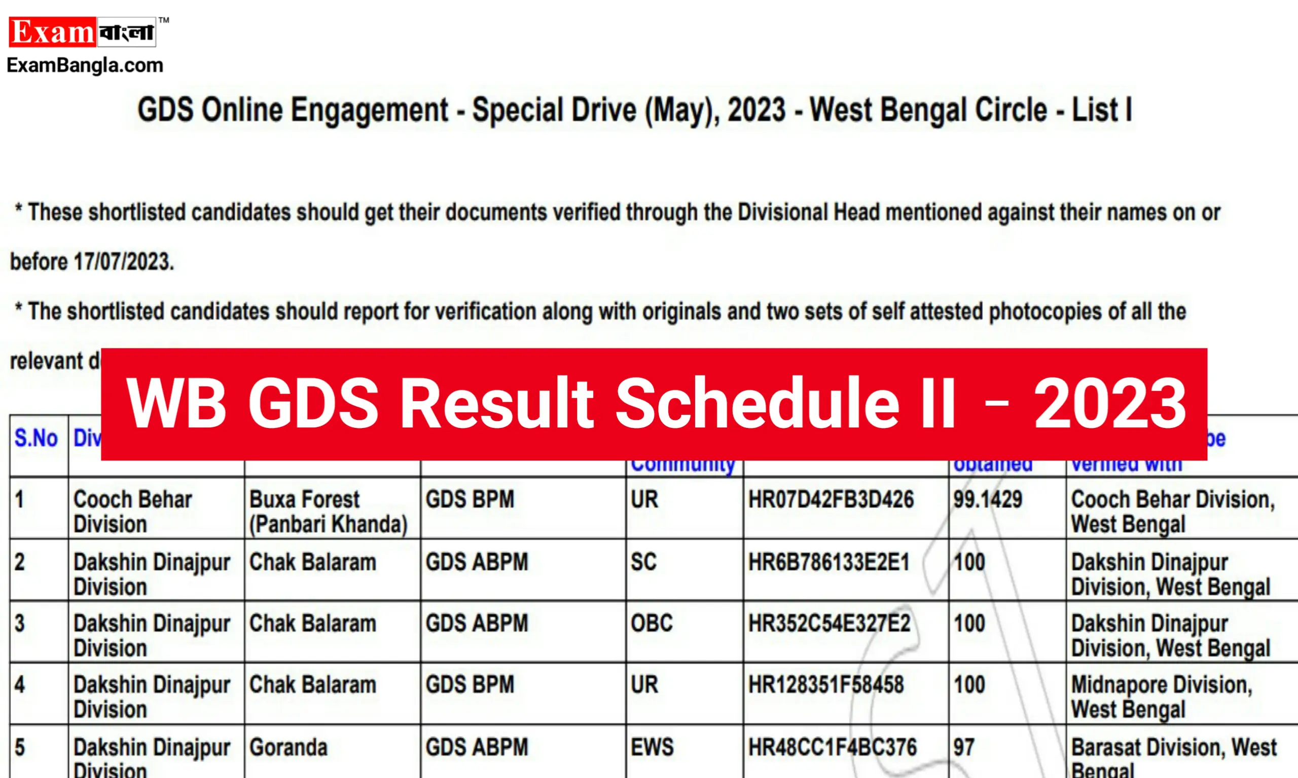 - এরপর ‘Candidates Corner’-এর নীচে থাকা ‘GDS 2023 Schedule-II Shortlisted candidates’ অপশনে গিয়ে ‘West Bengal’ বেছে নিতে হবে। পশ্চিমবঙ্গের প্রার্থীরা এখান থেকেই নিজেদের ফলাফল দেখতে পাবেন।