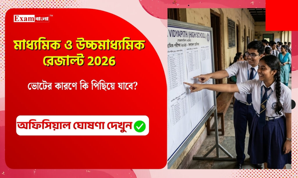 ভোটের কারণে কি পিছিয়ে যাবে মাধ্যমিক ও উচ্চমাধ্যমিক রেজাল্ট 2026? সম্প্রতি পশ্চিমবঙ্গের বিধানসভা নির্বাচনের দিনক্ষণ ঘোষণা করেছে নির্বাচন কমিশন। দুই দফায় যথাক্রমে ২৩ ও ২৯ এপ্রিল ভোট হবে বলে স্থির হয়েছে। যার জের চলবে মে পর্যন্ত। এদিকে এই সময়েরই মধ্যে মাধ্যমিক ও উচ্চ মাধ্যমিক পরীক্ষার রেজাল্ট বেরোনোর কথা। তবে কি ভোটের জন্য এবছর রেজাল্ট দেরিতে বেরোবে? এই নিয়ে অফিসিয়ালি কি ঘোষণা এসেছে? দেখে নেব।