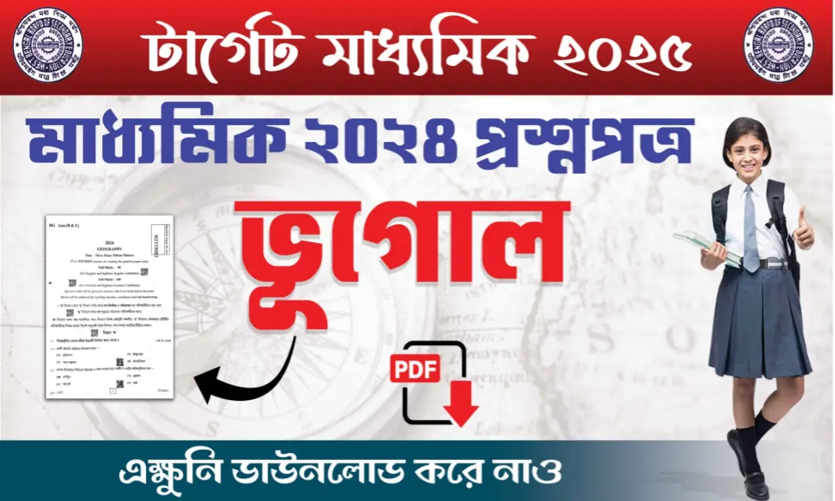 মাধ্যমিক পরীক্ষার্থীদের জন্য প্রকাশ করা হলো ২০২৪ সালের মাধ্যমিক ভূগোল পরীক্ষার প্রশ্নপত্রের পিডিএফ। তোমরা যারা আগামী বছরের মাধ্যমিক পরীক্ষায় বসবে তাদের জন্য এই প্রশ্নপত্র গুলি খুবই গুরুত্বপূর্ণ।
