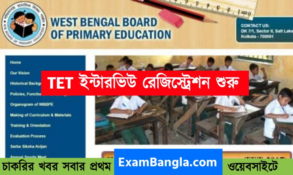 পশ্চিমবঙ্গের ২০১৪ এবং ২০১৭ সালের টেট উত্তীর্ণ পরীক্ষার্থীদের জন্য আজ থেকে শুরু হচ্ছে WB TET INTERVIEW REGISTRATION। আবেদন করা যাবে অনলাইন মারফত। আজ থেকে চালু হবে পোর্টাল। জেনে নিন বিস্তারিত নিয়মাবলী। আজ থেকে চালু হওয়া WB টেট ইন্টারভিউ রেজিস্ট্রেশনে আবেদন করতে পারবেন ২০১৪ এবং ২০১৭ সালের টেট উত্তীর্ণ পরীক্ষার্থীরা। এখনও পর্যন্ত বয়সসীমা সংক্রান্ত বিজ্ঞপ্তি পর্ষদ মারফত না আসলেও প্রার্থীদের বয়স ৪০ এর মধ্যে থাকা উচিত। তবে ইন্টারভিউর জন্য আবেদন করতে হবে পর্ষদ নির্ধারিত যোগ্যতামান ও নিয়ম অনুযায়ী।