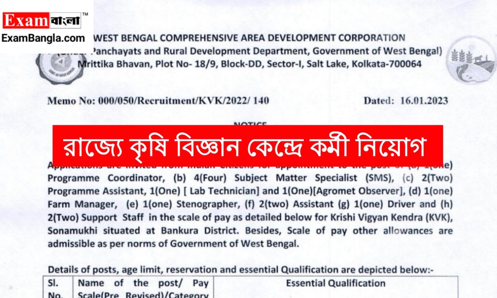 রাজ্যে কম্প্রিহেনসিভ এরিয়া ডেভেলাপমেন্ট কর্পোরেশন (WBDADC) -এর মাধ্যমে মাধ্যমিক পাশ সহ বিভিন্ন শিক্ষাগত যোগ্যতায় কর্মী নিয়োগের বিজ্ঞপ্তি প্রকাশ করা হয়েছে। যেকোনো ভারতীয় নাগরিক অর্থাৎ পশ্চিমবঙ্গের যেকোনো জেলার প্রার্থীরা এখানে আবেদন করতে পারবেন। আবেদন পদ্ধতি শিক্ষাগত যোগ্যতা সহ বিস্তারিত জানতে নিচে রইলো আজকের এই প্রতিবেদন।
