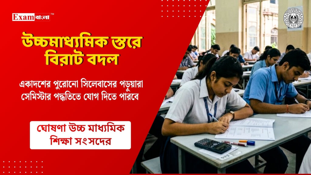 সম্প্রতি উচ্চমাধ্যমিক স্তরে বিরাট বদল ঘোষণা করল পশ্চিমবঙ্গ উচ্চমাধ্যমিক শিক্ষা সংসদ (WBCHSE)। এবার পুরনো সিলেবাস ছেড়ে সেমিস্টার পদ্ধতিতে যেতে পারবে একাদশের পড়ুয়ারা, নতুন এই ব্যবস্থা চালু হলো। ২০২৪-২৫ শিক্ষাবর্ষ থেকে উচ্চ মাধ্যমিকের সেমিস্টার সিস্টেম এসেছে। তবে অনেক পড়ুয়ারাই এখনো পুরনো সিলেবাসে পাঠরত। এবার সংসদ জানালো যে তারা চাইলে পুরনো সিলেবাস ছেড়ে নতুন সেমিস্টার সিস্টেমে যোগ দিতে পারে। তবে পুরোনো সিলেবাস ছেড়ে নতুন সেমিস্টার পদ্ধতিতে আসতে গেলে শিক্ষার্থীদের নির্দিষ্ট প্রক্রিয়া এবং নিয়ম মানতে হবে। বিস্তারিত আজকের প্রতিবেদনে রইল।