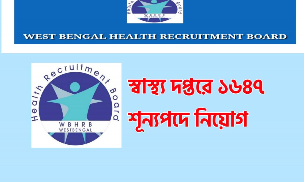 পশ্চিমবঙ্গের স্বাস্থ্য দপ্তরের তরফ থেকে মোট 1647 শূন্যপদে কর্মী নিয়োগের বিজ্ঞপ্তি প্রকাশিত হয়েছে। যেকোন ভারতীয় নাগরিক অর্থাৎ পশ্চিমবঙ্গের যেকোন জেলা থেকে পুরুষ মহিলা উভয়ই আবেদন করতে পারবেন। নিয়োগ করা হবে একাডেমিক স্কোর এবং ইন্টারভিউয়ের মাধ্যমে। অনলাইনে আবেদন করতে পারবেন আগামী 28 জানুয়ারি 2021 তারিখ থেকে 6 ফেব্রুয়ারি 2021 তারিখ পর্যন্ত।