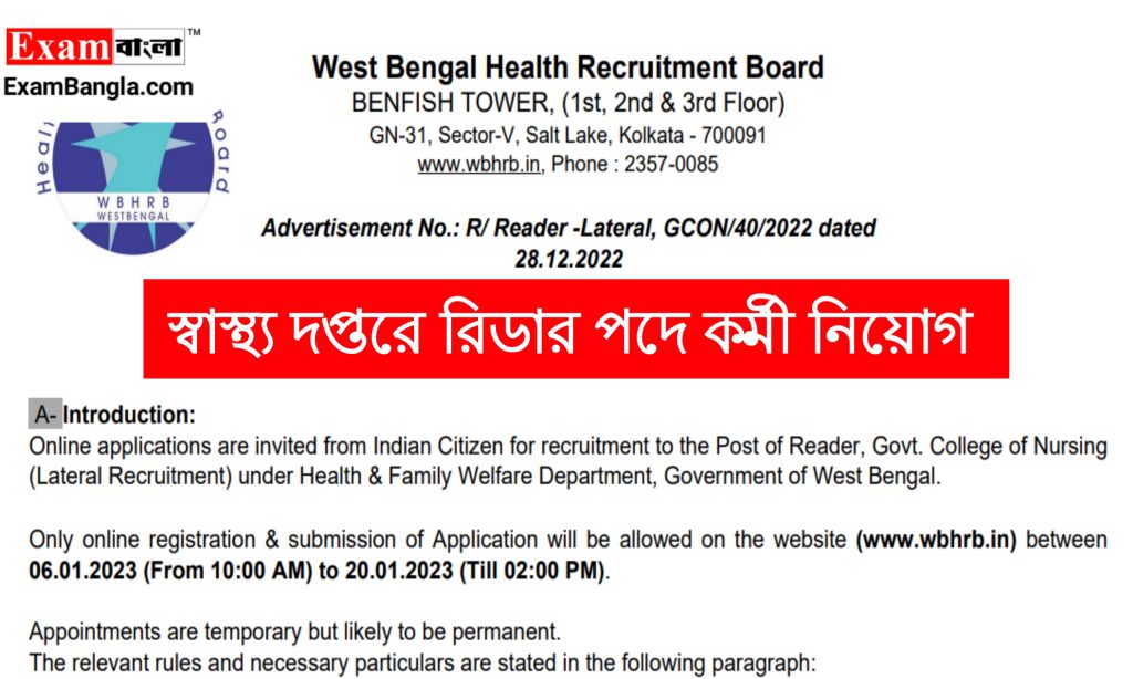 আবেদন পদ্ধতি- ইচ্ছুক প্রার্থীদের অনলাইনের মাধ্যমে আবেদন করতে হবে। www.wbhrb.in গিয়ে রেজিস্ট্রেশন করতে হবে। রেজিস্ট্রেশন করার সময় প্রার্থীর বৈধ ইমেইল আইডি, মোবাইল নাম্বার, শিক্ষাগত যোগ্যতার সার্টিফিকেট, আবেদন ফি সহ সমস্ত প্রয়োজনীয় ডকুমেন্টস স্ক্যান করে আপলোড করতে হবে।