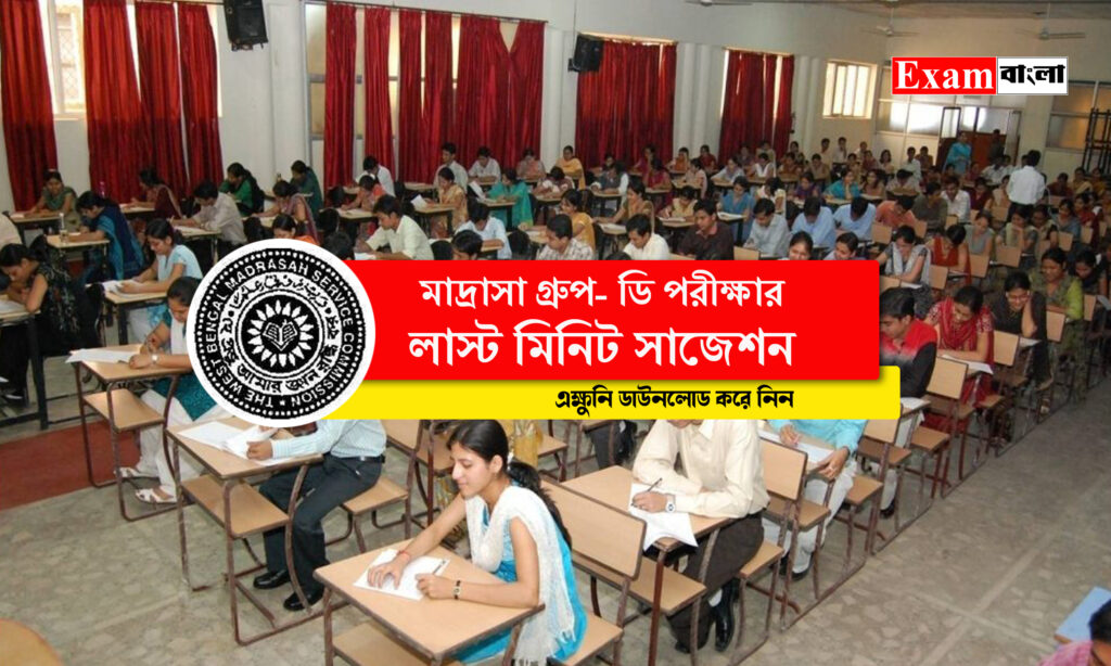 রাজ্যের মাদ্রাসা সার্ভিস কমিশনের গ্রুপ- ডি পরীক্ষার তারিখ ঘোষণা করা হয়েছে। কমিশনের ঘোষণা অনুযায়ী উক্ত পরীক্ষাটি আয়োজিত হবে আগামী ১ সেপ্টেম্বর ২০২৪ তারিখ, রবিবার। ২০১০ সালের জারি করা বিজ্ঞপ্তি অনুযায়ী সংশ্লিষ্ট পরীক্ষাটি আয়োজিত হবে দীর্ঘদিন পর। প্রস্তুতির জন্য হাতে তেমন একটা বেশি সময় নেই। তাই প্রত্যেক পরীক্ষার্থীর জেনে নেয়া উচিত কোন ধরনের প্রশ্ন পরীক্ষায় আসতে পারে এবং ঠিক কোন বই এই মুহূর্তে পড়া উচিত।