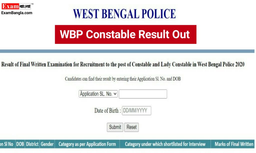 WBP Constable Final Result 2020: Click Here