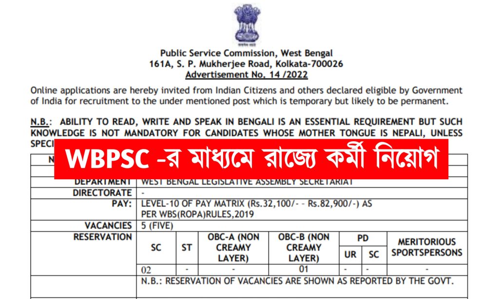 আবেদন পদ্ধতি- ইচ্ছুক প্রার্থীদের অনলাইনের মাধ্যমে আবেদন করতে হবে। নিচে দেওয়া লিংকে ক্লিক করে অফিসিয়াল বিজ্ঞপ্তি থেকে “Appendix-I” আবেদনপত্র ডাউনলোড করে সঠিকভাবে পূরণ করতে হবে। পরে www.wbpsc.gov.in গিয়ে রেজিস্ট্রেশন করতে হবে। রেজিস্ট্রেশন করার সময় প্রার্থীর বৈধ ইমেইল আইডি ও মোবাইল নাম্বার, আবেদনপত্র সহ সমস্ত প্রয়োজনীয় ডকুমেন্টস স্ক্যান করে আপলোড করতে হবে।