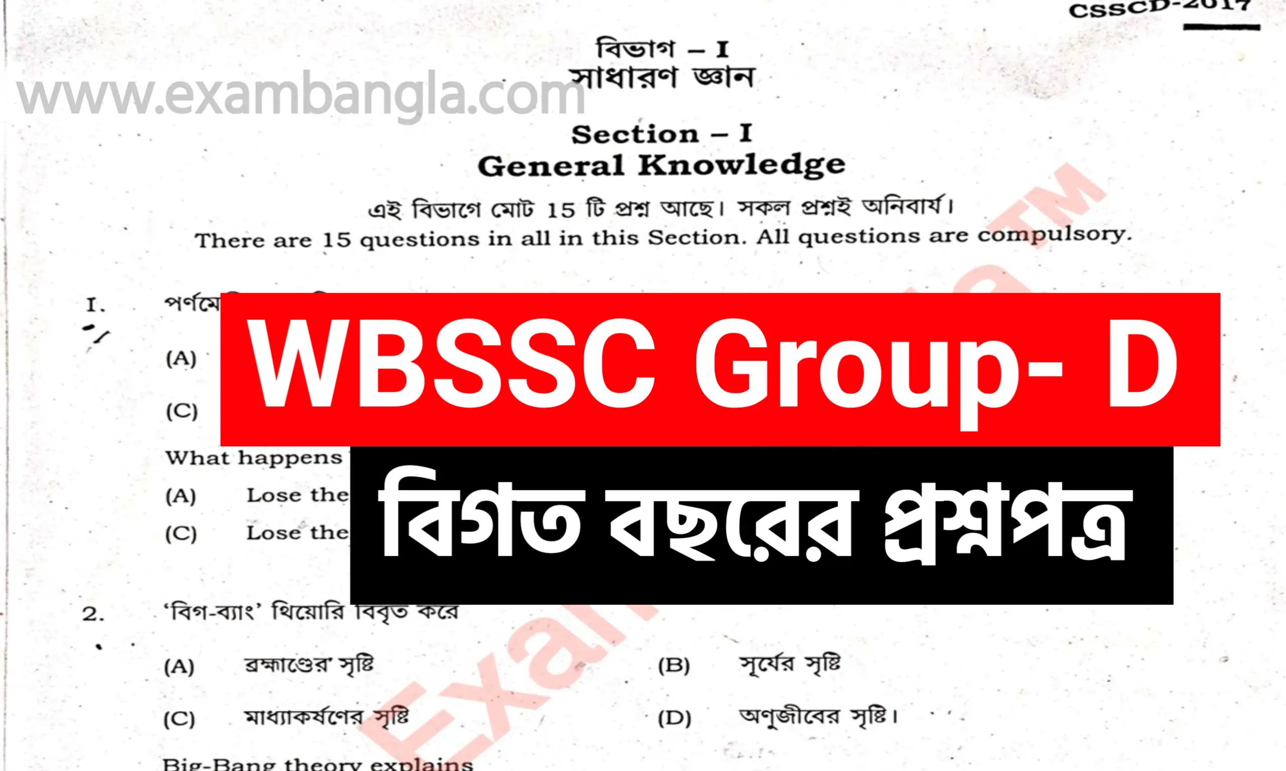 WBSSC Group D Previous Year Question Paper: Hello Dear Student,