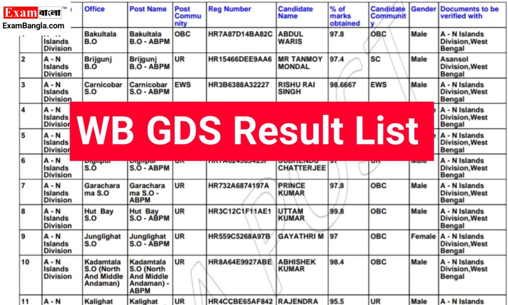 West Bengal GDS Result 2023 List ডাউনলোড করার জন্য নীচে দেওয়া ‘Click Here’ বাটনে ক্লিক করুন-