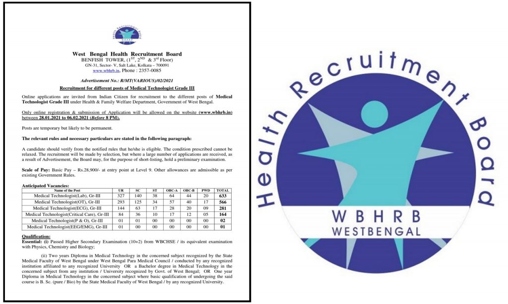 পদের নাম: মেডিক্যাল টেকনোলজিস্ট গ্রেড- III। নিয়োগ প্রক্রিয়া পরিচালনা করবে West Bengal Health Recruitment Board.