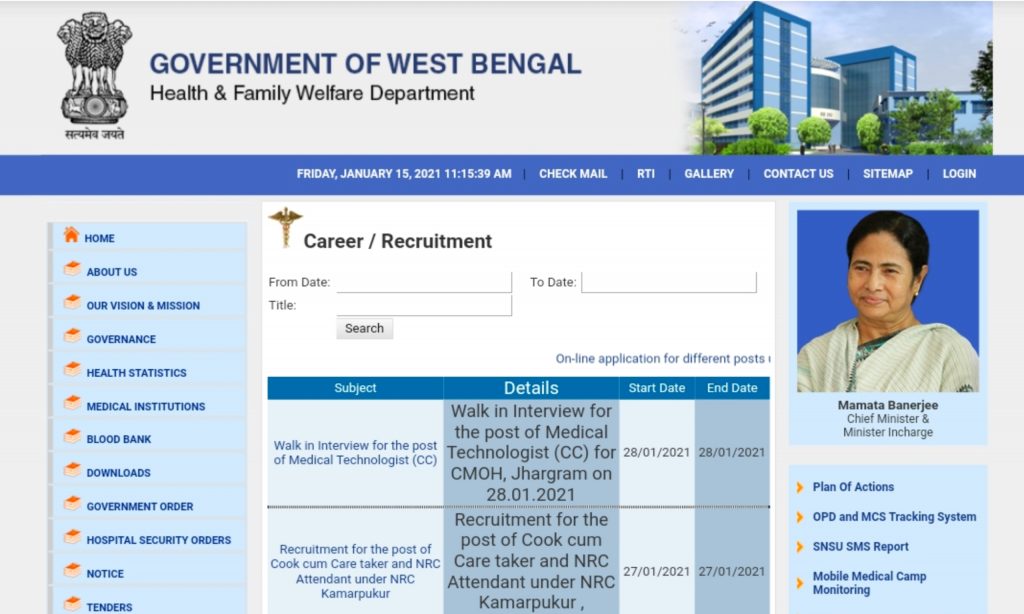আবেদন করতে হবে অনলাইনে। www.wbhealth.gov.in ওয়েবসাইটে গিয়ে অনলাইনে রেজিস্ট্রেশন করতে পারবেন। অনলাইনে আবেদন করার শেষ তারিখ 22 জানুয়ারি।