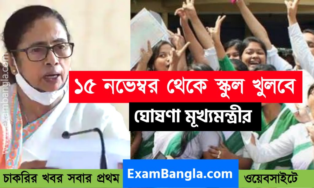 এত কিছু ব্যবস্থা নেওয়ার পরেও সরকারের তরফে জানানো হয়েছে, করোনা পরিস্থিতি স্থিতিশীল থাকলে আগামী ১৬ নভেম্বর, ২০২১ তারিখ নিশ্চিত খুলতে চলেছে স্কুল গুলি। পাশাপাশি করোনা নিয়ন্ত্রণ না থাকলে সমস্ত স্বাস্থ্যবিধি মেনে স্কুল খোলার সম্ভাব্য তারিখ পরে জানানো হবে। রাজ্যের যেকোন শিক্ষার খবর সবার প্রথম পেতে প্রতিদিন ভিজিট করুন ExamBangla.com ওয়েবসাইট।