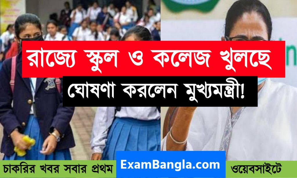 বহু প্রতিক্ষার অবসান! পশ্চিমবঙ্গের স্কুল, কলেজ ও বিশ্ববিদ্যালয়ের ছাত্র-ছাত্রীদের জন্য বিরাট সুখবর। আগামী ৩ ফেব্রুয়ারি থেকে রাজ্যে ফের খুলতে চলেছে স্কুল, কলেজ ও বিশ্ববিদ্যালয়। এদিন ৩১ জানুয়ারি, সোমবার মুখ্যমন্ত্রী মমতা বন্দ্যোপাধ্যায় নবান্নে সাংবাদিক বৈঠক করে জানিয়েছেন আগামী ৩ ফেব্রুয়ারি থেকে গোটা রাজ্য জুড়ে স্কুল, কলেজ এবং বিশ্ববিদ্যালয়গুলি খুলবে। কেবল সরকারি স্কুল নয়, বেসরকারি স্কুল গুলিও ৩ ফেব্রুয়ারি থেকে চালু হয়ে যাবে।