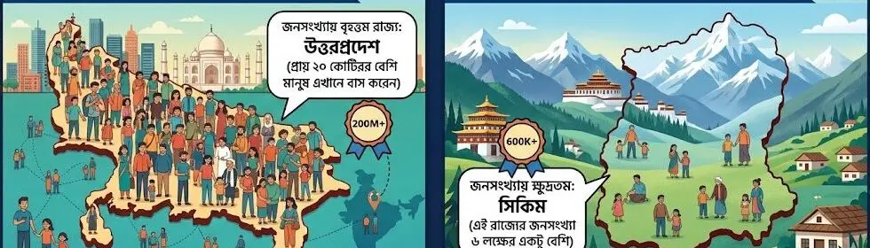 জনসংখ্যার ভিত্তিতে ভারতের ক্ষুদ্রতম ও বৃহত্তম রাজ্য (Which are the smallest and largest states in india in terms of population?)