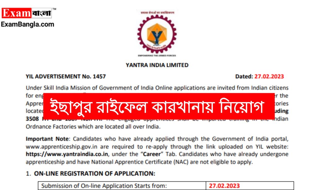 আবেদন পদ্ধতি- ইচ্ছুক প্রার্থীদের অনলাইনের মাধ্যমে আবেদন করতে হবে। www.yantraindia.co.in গিয়ে রেজিস্ট্রেশন করতে হবে। রেজিস্ট্রেশন করার সময় প্রার্থীর বৈধ ইমেইল আইডি, মোবাইল নাম্বার, শিক্ষাগত যোগ্যতার সার্টিফিকেট সহ সমস্ত প্রয়োজনীয় ডকুমেন্টস স্ক্যান করে JPEG/ JPG Format -এ আপলোড করতে হবে।